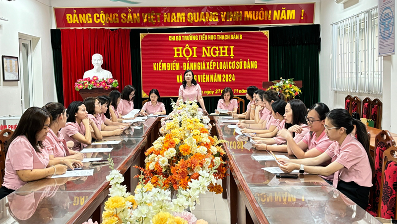 16h30 ngày 21/11/2024, Chi bộ Trường Tiểu học Thạch Bàn B đã tổ chức thành công Hội nghị kiểm điểm, đánh giá, xếp loại tập thể, cá nhân năm 2024. Chủ trì Hội nghị, đồng chí Nguyễn Thị Thu Hương – Bí thư Chi bộ - Hiệu trưởng nhà trường và toàn thể đảng viên tham dự. Hội nghị kiểm điểm tự phê bình, phê bình và đánh giá, xếp loại chất lượng hàng năm là cơ sở để Chi bộ phát huy những điểm mạnh, khắc phục những mặt còn tồn tại trong năm.