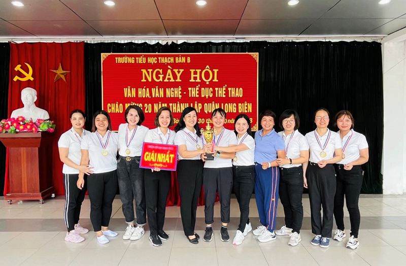Thực hiện kế hoạch số 107-KH/QU ngày 24/02/2023 của Quận uỷ Long Biên về tổ chức các hoạt động hướng tới kỷ niệm 20 năm ngày thành lập quận Long Biên; Thông báo số 793-TB/QU ngày 11/01/2023của Quận uỷ về việc tổ chức các hoạt động chào mừng 20 năm ngày thành lập quận Long Biên (0/11/2003- 6/11/2023). Công văn số 153/LĐLĐ ngày 08/10/2023 về việc tổ chức các hoạt động và tuyên truyền thành tựu 20 năm thành lập quận Long biên (2003 – 2023). Chiều ngày 30/10/2023, công đoàn trường tiểu học Thạch bàn B đã tổ chức thành công Ngày hội văn hoá, văn nghệ - thể dục, thể thao với sự tham gia nhiệt tình của tất cả đoàn viên công đoàn.