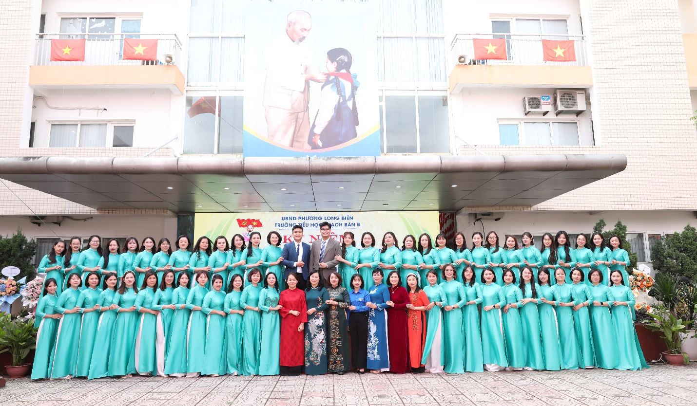 Trong không khí trang trọng và ấm áp của ngày lễ, đại diện lãnh đạo phường Long Biên, Ban đại diện cha mẹ học sinh, cùng học sinh toàn trường đã gửi tặng những lẵng hoa tươi thắm để bày tỏ lòng biết ơn đối với các thầy cô giáo.