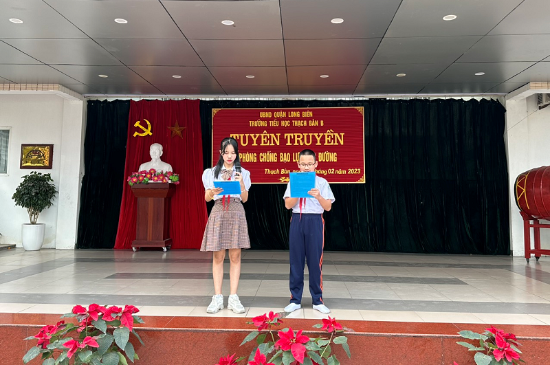 Hiện nay tình trạng bạo lực học đường liên tục xảy ra đã trở thành nỗi bức xúc của toàn xã hội, và trở thành mối lo lắng của không chỉ các bậc phụ huynh, thầy cô giáo mà còn là nỗi lo của tất cả những người quan tâm đến sự nghiệp bảo vệ, chăm sóc và giáo dục trẻ em. Thực hiện kế hoạch giáo dục nhà trường năm học 2022 - 2023, sáng ngày 20/02/2023, trường Tiểu học Thạch Bàn B tổ chức Tuyên truyền phòng chống bạo lực học đường.