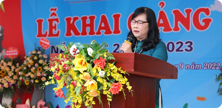 Đ.c Trần Thị Bích Diệp – Phó bí thư chi bộ, Phó hiệu trưởng nhà trường đọc thư của Chủ tịch nước nhân dịp khai giảng năm học mới 2022 - 2023