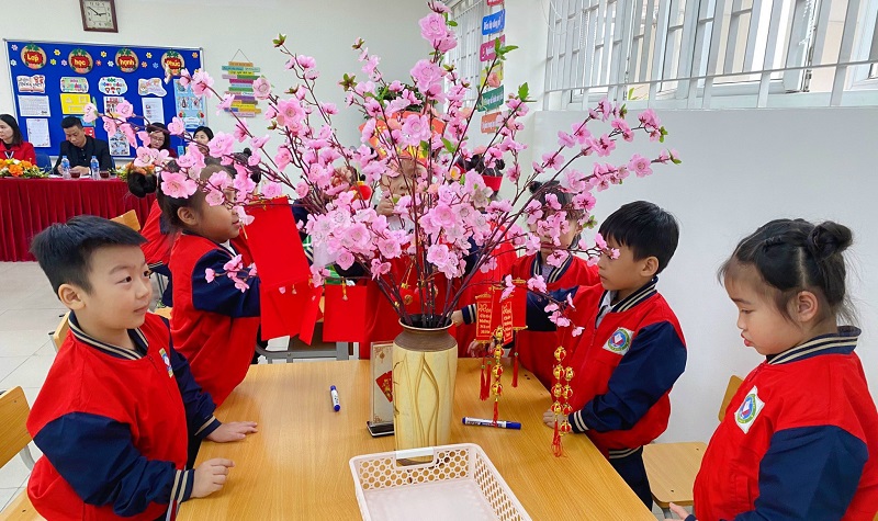 Với Nội dung thi thứ hai: Chiều ngày 04/01/2023, cô Thu Trang đã tham gia phần thi Thực hành tiết dạy. Tiết dạy “ Em vui học Toán” đã được thiết kế theo định hướng đổi mới phương pháp dạy học, sử dụng kĩ thuật dạy học Mảnh ghép, khai thác sử dụng sáng tạo, hiệu quả phương tiện, đồ dùng dạy học tự làm, ứng dụng công nghệ thông tin giúp học sinh chủ động nắm kiến thức. Trong tiết học, các em được ôn tập, trải nghiệm những điều thú vị của các phép tính, các hình đã học qua những hoạt động đón Tết chào mừng xuân Quý Mão 2023 như: đi chợ Tết, trang trí ngày Tết, tham gia lễ hội Tết, chúc Tết ông bà, người thân,... Các em được múa hát, vận động tạo hình, tham gia các trò chơi sôi nổi, được luyện tập thực hành, ôn tập các phép cộng trừ trong phạm vi 10, các hình vuông, tròn, tam giác, hình chữ nhật,... một cách nhẹ nhàng, vui vẻ; được vận dụng những kiến thức đã học để giải quyết một số tình huống gắn với thực tế. Là một giáo viên trẻ nhưng có chuyên môn vững vàng, cô giáo đã tổ chức đa dạng các hoạt động, hình thức phù hợp với đặc trưng phân môn, đặc trưng dạng bài, tạo hứng thú học tập cho học sinh, thực hiện đánh giá học sinh theo đúng hướng dẫn của Văn bản hợp nhất số 03/VBHN-BGDĐT ngày 28 tháng 9 năm 2016 của Bộ GD&ĐT về Quy định đánh giá học sinh tiểu học. Trong tiết day, cô giáo đã vận dụng dạy học phân hóa các đối tượng học sinh để giúp các em có các mức độ tiếp thu khác nhau đều đạt được những kiến thức, kĩ năng cần thiết. Đặc biệt, tiết dạy đã áp dụng một phần nội dung của giải pháp “Dạy học trải nghiệm Toán lớp 1 tại sân vườn trường với dạng bài Em ôn lại những gì đã học và Em vui học toán”, học sinh được thực hành trải nghiệm đi thu hoạch hoa đồng tiền, hoa cúc để cùng nhau tạo ra sản phẩm sáng tạo gắn với các phép tính đã học. Đây cũng là một trong số những điểm sáng của tiết dạy được Ban giám khảo đánh giá cao.
