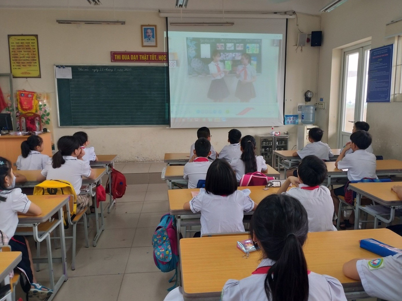 Các em học sinh được xem video giới thiệu cuốn sách