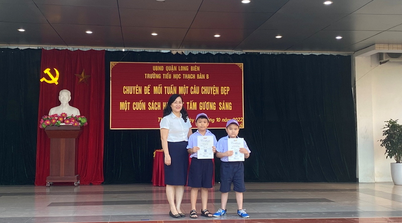 Thực hiện Chương trình Công tác Đội và phong trào thiếu nhi năm học 2022 - 2023, hướng dẫn đợt thi đua thứ hai năm học 2022 – 2023, sáng ngày 31/10/2022, Liên đội trường Tiểu học Thạch Bàn B tổ chức sinh hoạt chủ đề “Mỗi tuần một câu chuyện đẹp, một cuốn sách hay, một tấm gương sáng”.